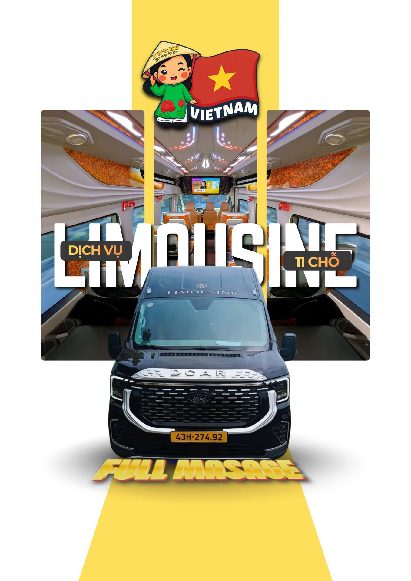 Thuê xe Limousine 11 chỗ ghế massage tại Đà Nẵng HOT nhất 2026